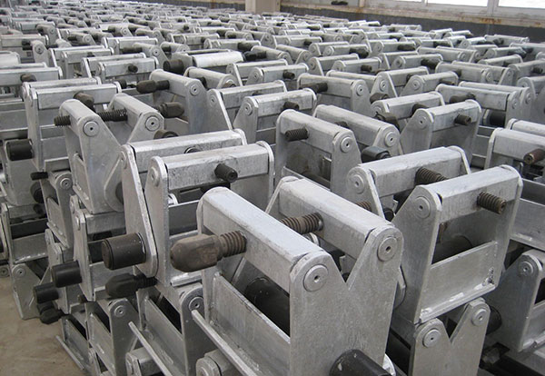 陽(yáng)極卡具及掛鉤(小盒卡具,螺旋卡具)是大型預(yù)焙陽(yáng)極鋁電解槽上級(jí)結(jié)構(gòu)的一個(gè)重要組成部分,用于400KA預(yù)焙電解槽上母線與導(dǎo)桿組的快速加緊聯(lián)接,在高溫、多塵、強(qiáng)磁場(chǎng)的條件下工作。